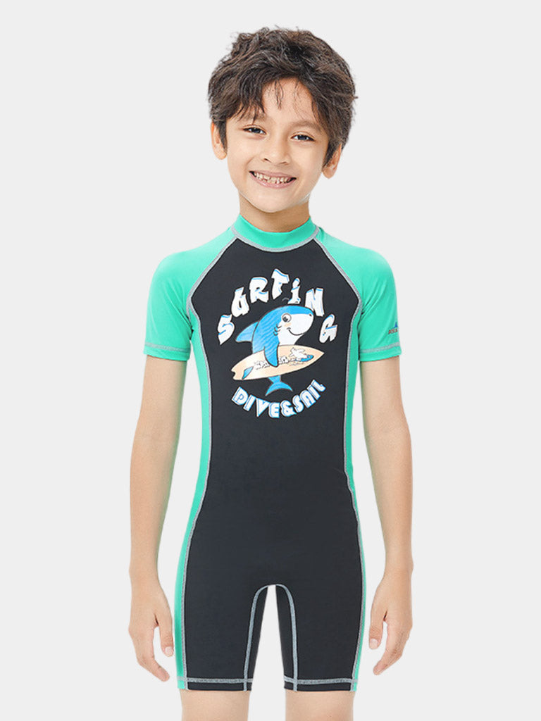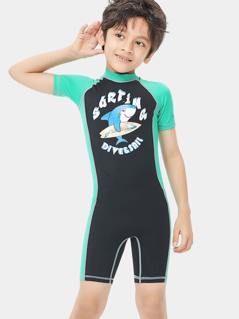 Package Include | 1 x DIVE & SAIL Boys Shorty Back Zip Shark Dive Skin Suit |