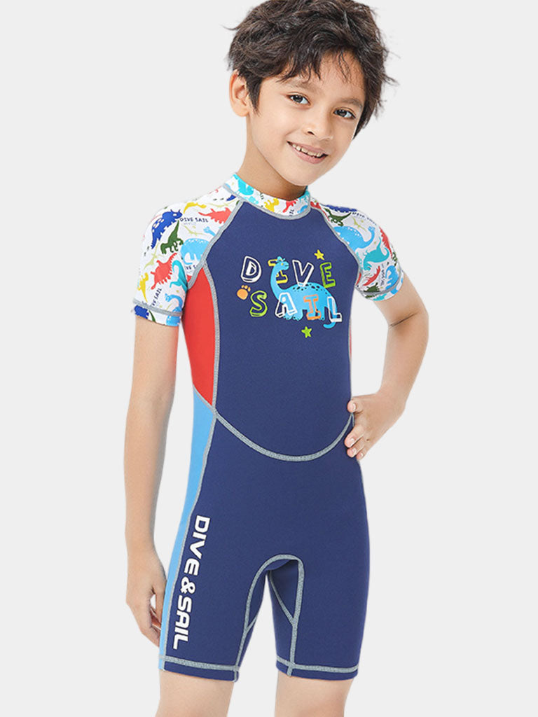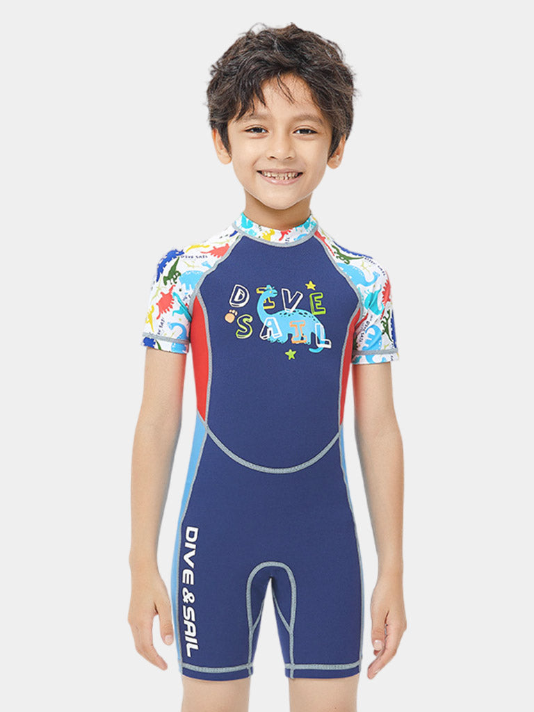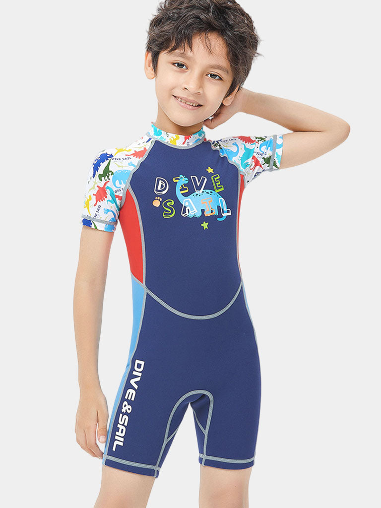Package Include | 1x DIVE & SAIL Boys 2mm Dinosaur Cartoon Shorty Wetsuit |