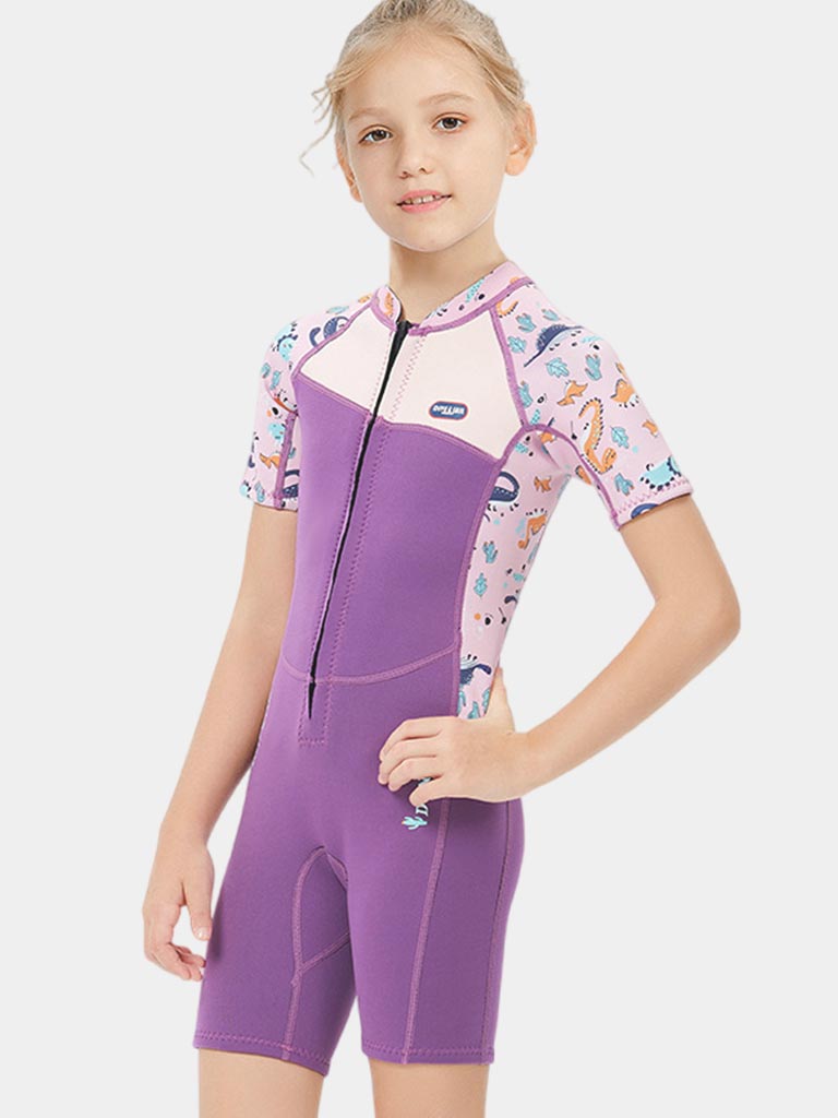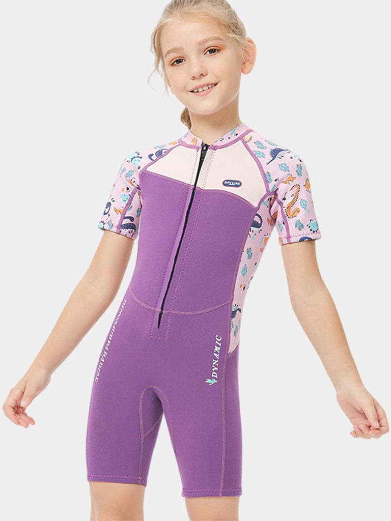 Made of neoprene and nylon,the DIVE & SAIL Girls 2.5mm Short Sleeve Front Zip One-piece Colorful Wetsuit is highly elastic and it's suitable for girls to do strentchable activities. Featuring with 3 layers, this swimming suit provides your body light and fresh. With a layer of fabric inside the zipper to avoid zipper damage to the child's skin. Also it can keep your girl's body warm while having water activities in cool water. This colorful shorty wetsuit is a great gift for kids. It's suitable for them to have outdoors activities, like swimming, scuba diving, surfing, snorkeling, have fun on the coast with their friends!